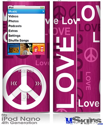 iPod Nano 4G Skin - Love and Peace Hot Pink