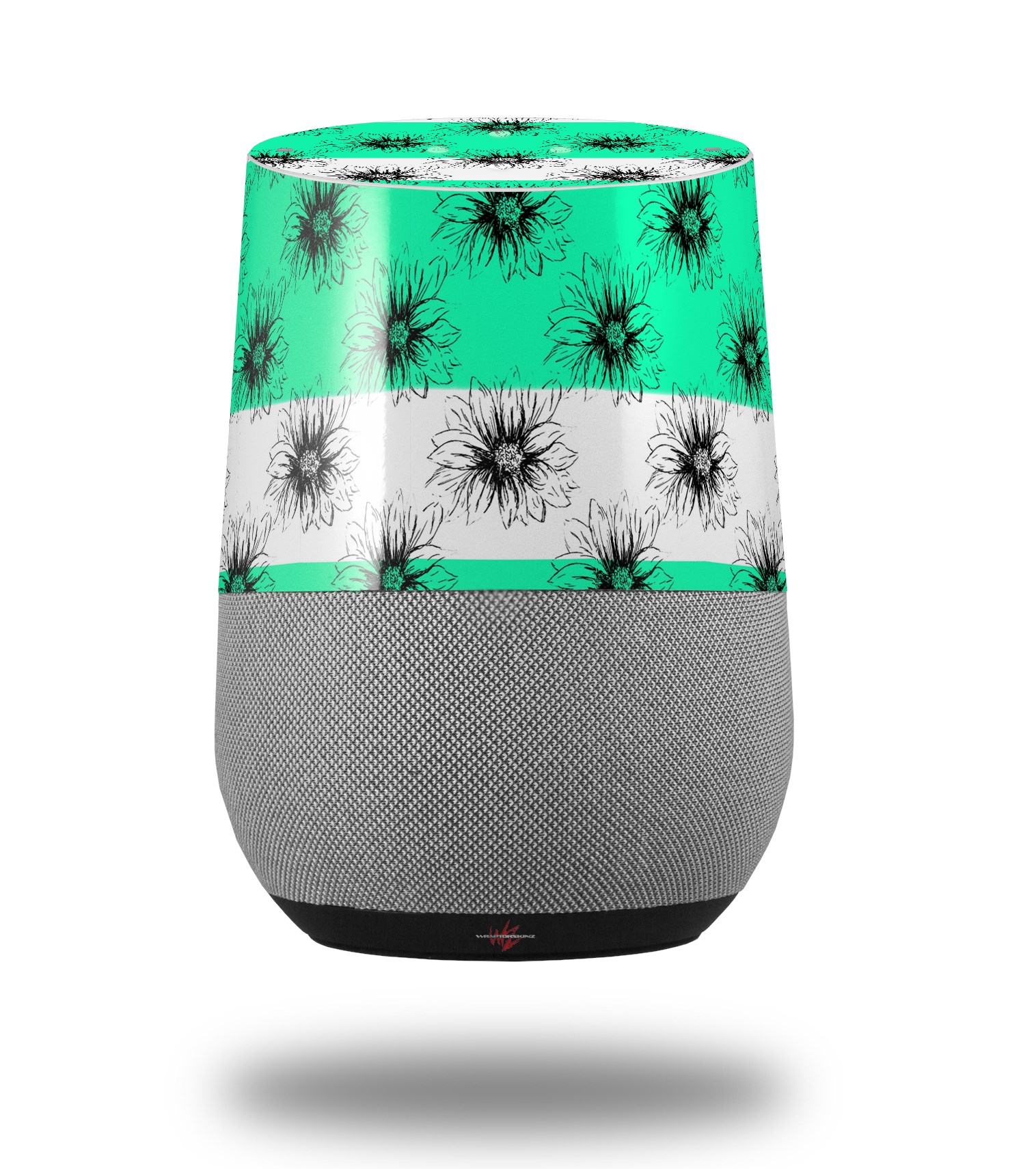 Decal Style Skin Wrap for Google Home Original - Kearas Daisies Stripe Sea Foam (GOOGLE HOME NOT INCLUDED)