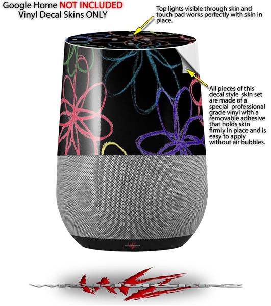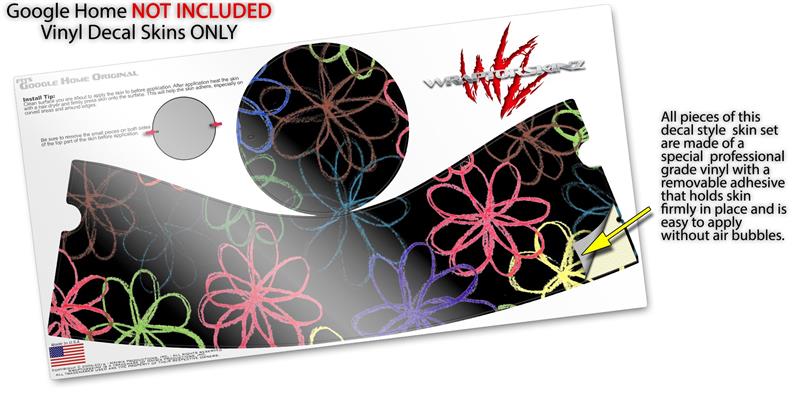 Decal Style Skin Wrap for Google Home Original - Kearas Flowers on Black (GOOGLE HOME NOT INCLUDED)