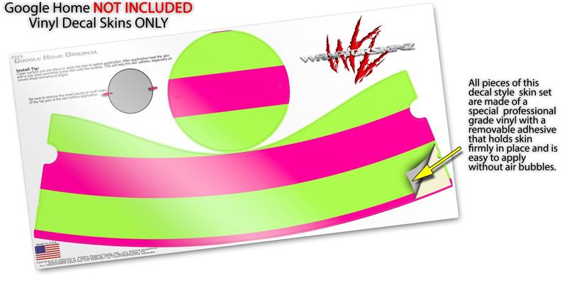 Decal Style Skin Wrap for Google Home Original - Psycho Stripes Neon Green and Hot Pink (GOOGLE HOME NOT INCLUDED)