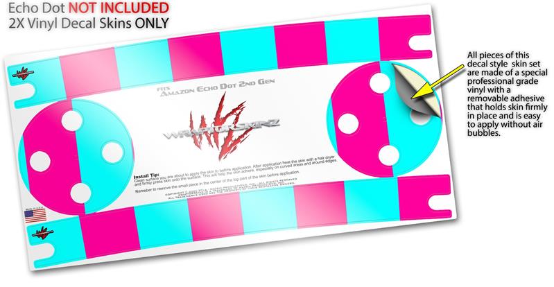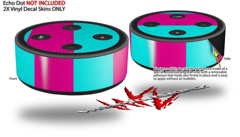 Skin Wrap Decal Set 2 Pack for Amazon Echo Dot 2 - Psycho Stripes Neon Teal and Hot Pink (2nd Generation ONLY - Echo NOT INCLUDED)