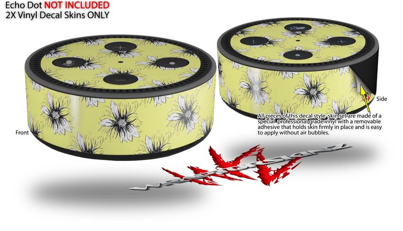 Skin Wrap Decal Set 2 Pack for Amazon Echo Dot 2 - Kearas Daisies Yellow (2nd Generation ONLY - Echo NOT INCLUDED)