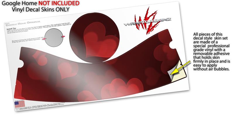 Decal Style Skin Wrap for Google Home Original - Bokeh Hearts Red (GOOGLE HOME NOT INCLUDED)