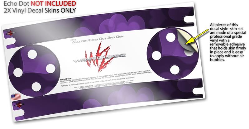 Skin Wrap Decal Set 2 Pack for Amazon Echo Dot 2 - Bokeh Hearts Purple (2nd Generation ONLY - Echo NOT INCLUDED)