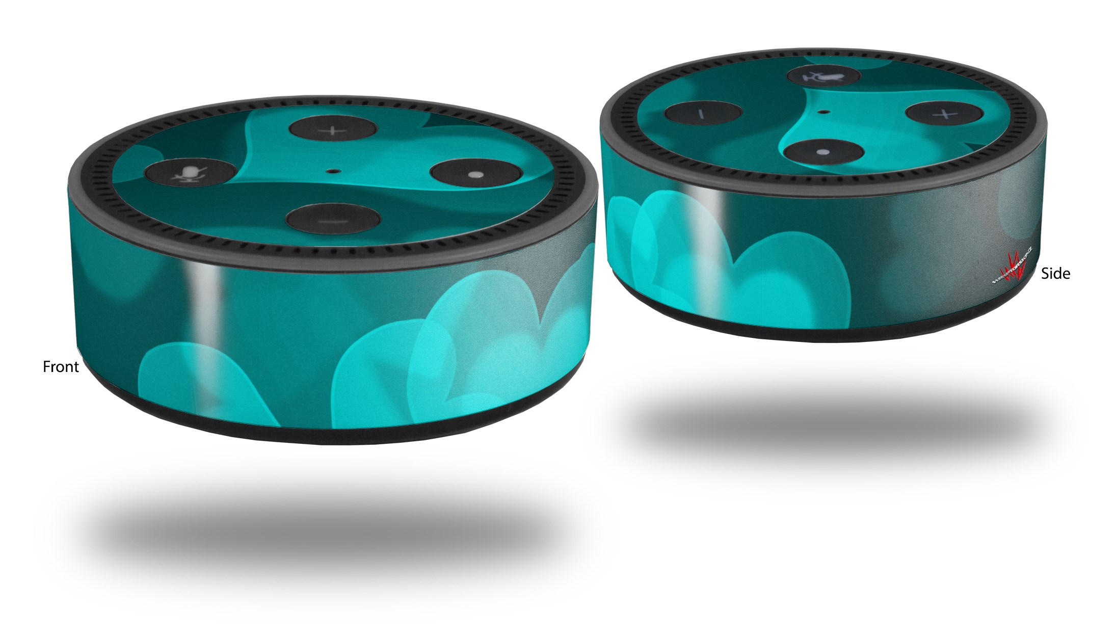 Skin Wrap Decal Set 2 Pack for Amazon Echo Dot 2 - Bokeh Hearts Neon Teal (2nd Generation ONLY - Echo NOT INCLUDED)