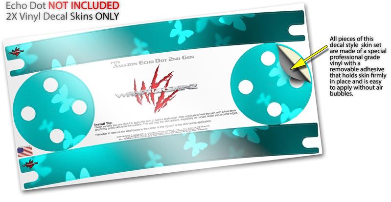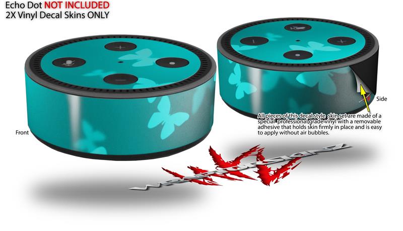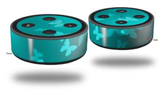 Skin Wrap Decal Set 2 Pack for Amazon Echo Dot 2 - Bokeh Butterflies Neon Teal (2nd Generation ONLY - Echo NOT INCLUDED)