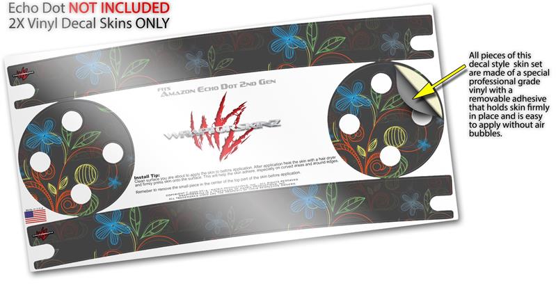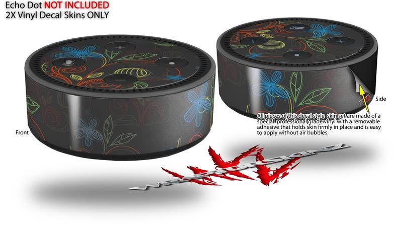 Skin Wrap Decal Set 2 Pack for Amazon Echo Dot 2 - Flowers Pattern 07 (2nd Generation ONLY - Echo NOT INCLUDED)