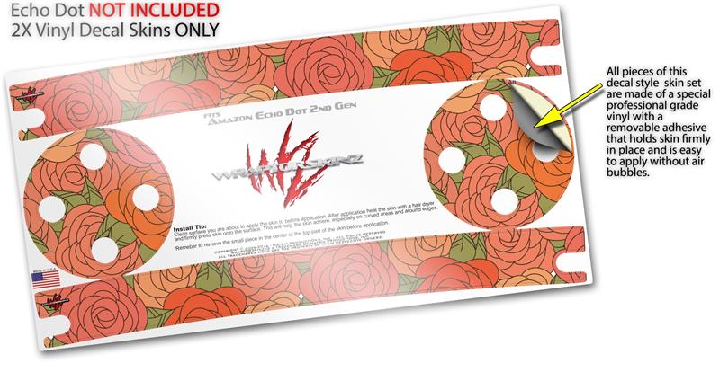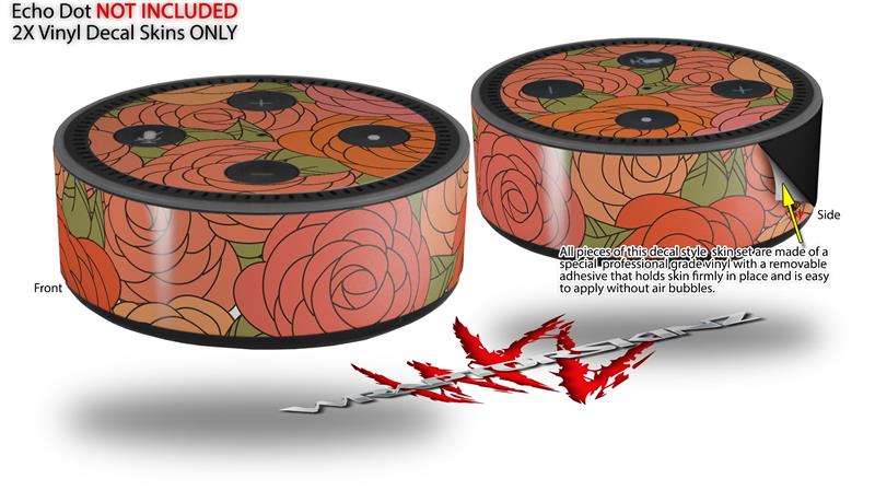 Skin Wrap Decal Set 2 Pack for Amazon Echo Dot 2 - Flowers Pattern Roses 06 (2nd Generation ONLY - Echo NOT INCLUDED)