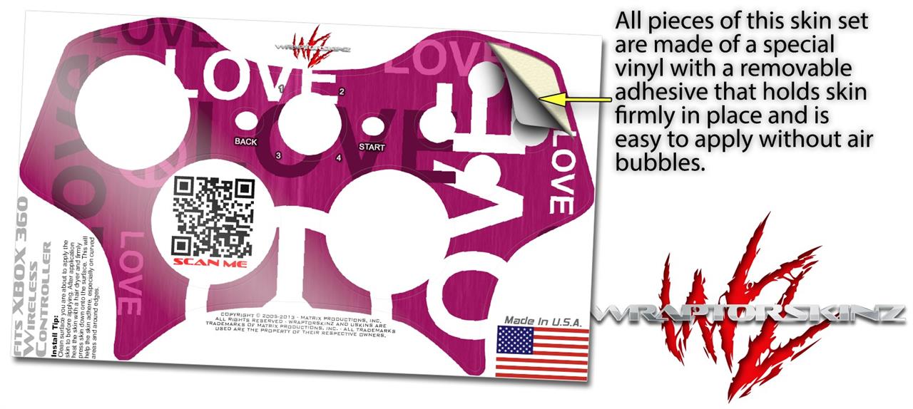 XBOX 360 Wireless Controller Decal Style Skin - Love and Peace Hot Pink (CONTROLLER NOT INCLUDED)