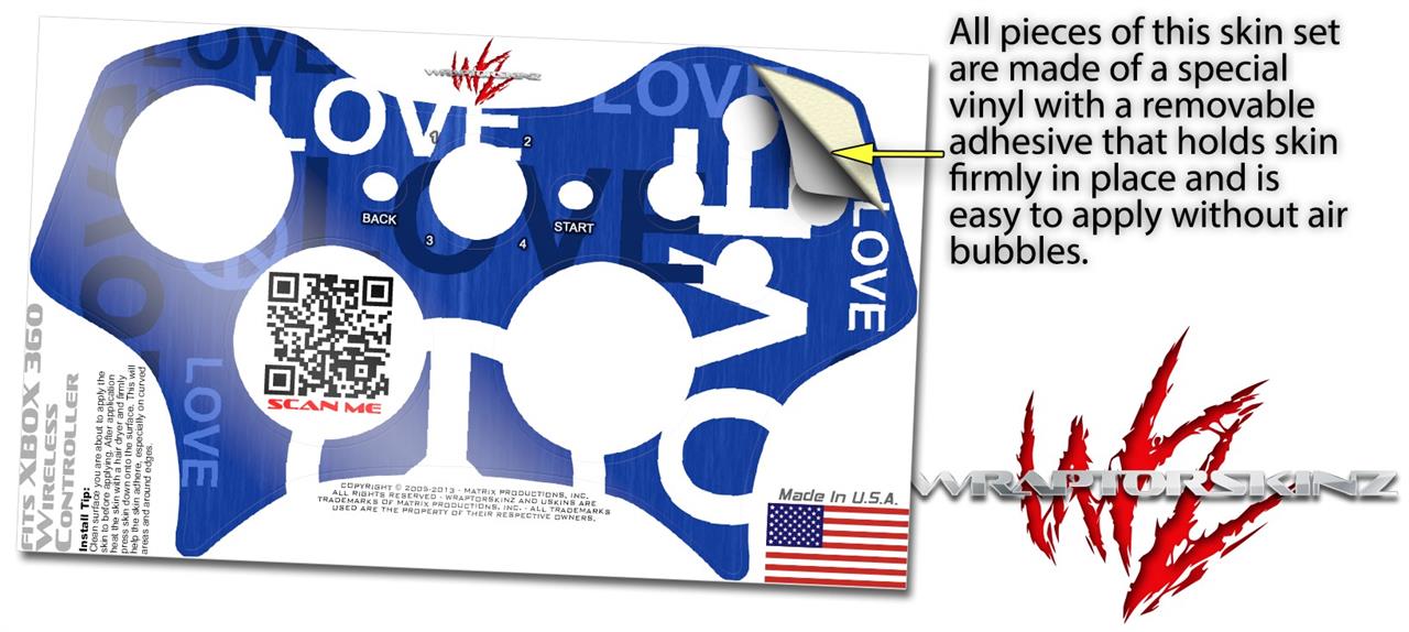 XBOX 360 Wireless Controller Decal Style Skin - Love and Peace Blue (CONTROLLER NOT INCLUDED)