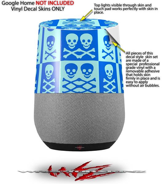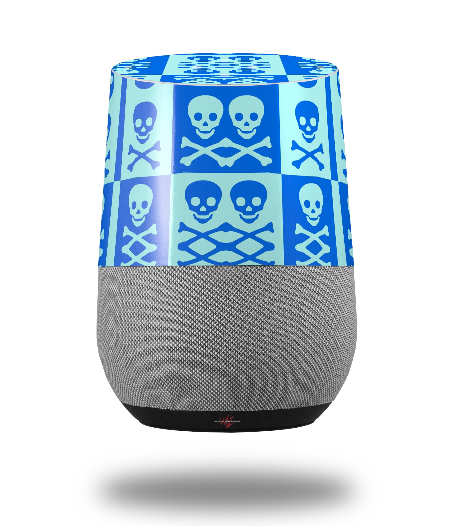 Decal Style Skin Wrap for Google Home Original - Skull And Crossbones Pattern Blue (GOOGLE HOME NOT INCLUDED)