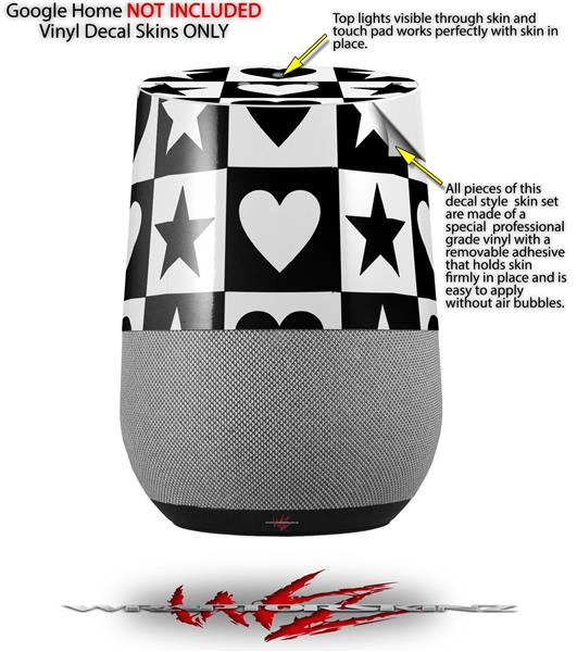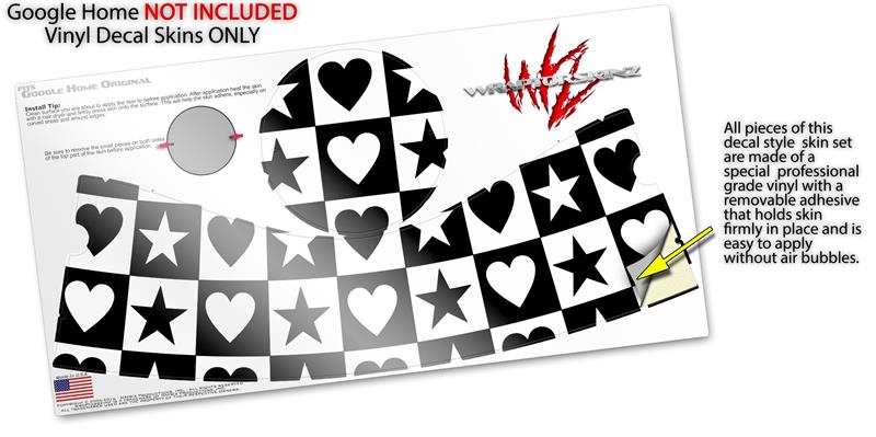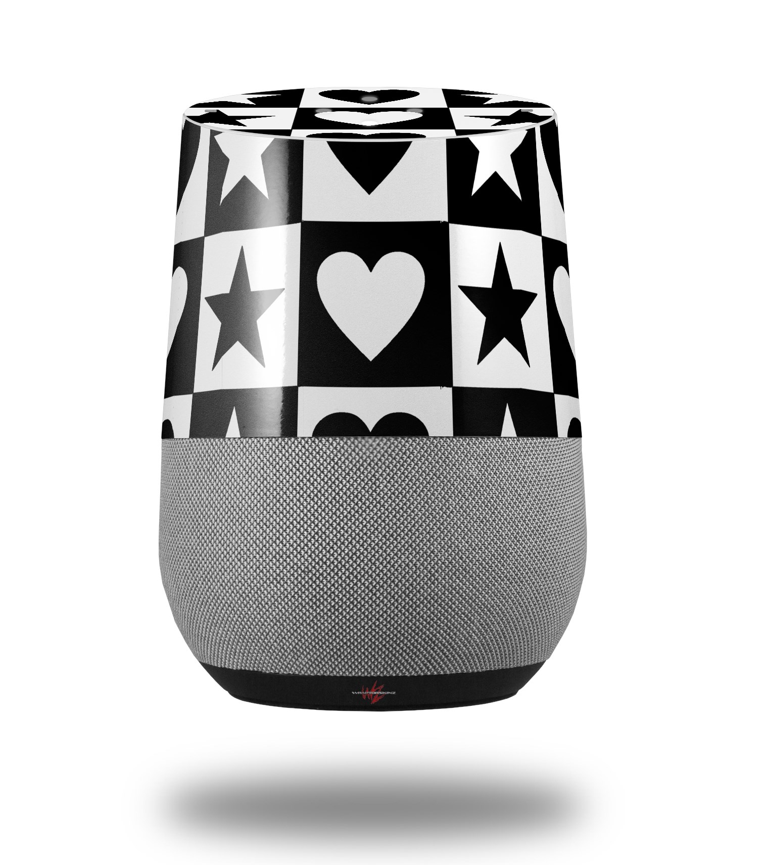Decal Style Skin Wrap for Google Home Original - Hearts And Stars Black and White (GOOGLE HOME NOT INCLUDED)