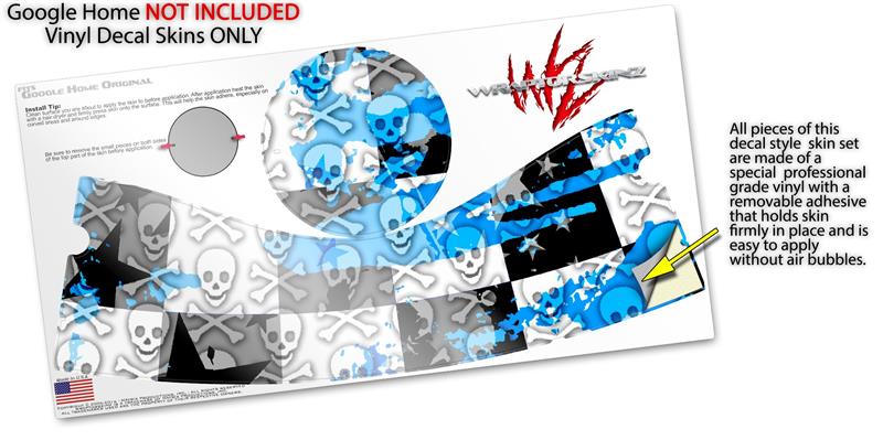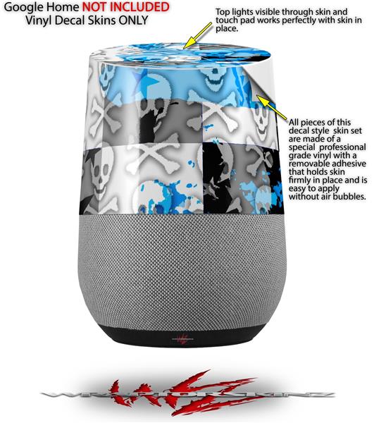 Decal Style Skin Wrap for Google Home Original - Checker Skull Splatter Blue (GOOGLE HOME NOT INCLUDED)