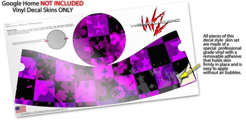 Decal Style Skin Wrap for Google Home Original - Purple Star Checkerboard (GOOGLE HOME NOT INCLUDED)