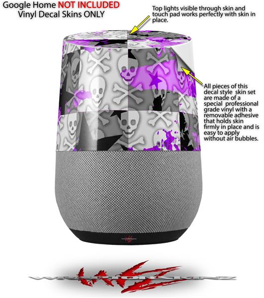 Decal Style Skin Wrap for Google Home Original - Purple Checker Skull Splatter (GOOGLE HOME NOT INCLUDED)
