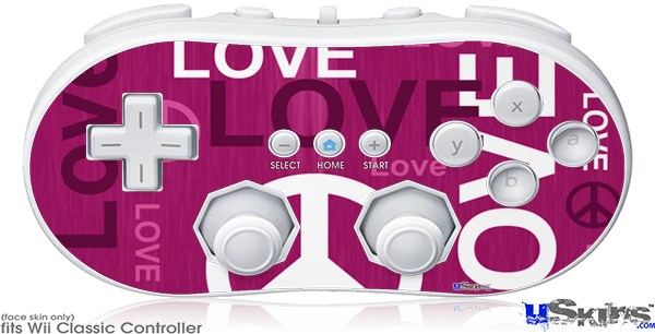 Wii Classic Controller Skin - Love and Peace Hot Pink