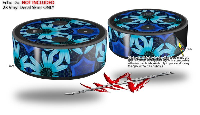 Skin Wrap Decal Set 2 Pack for Amazon Echo Dot 2 - Daisies Blue (2nd Generation ONLY - Echo NOT INCLUDED)