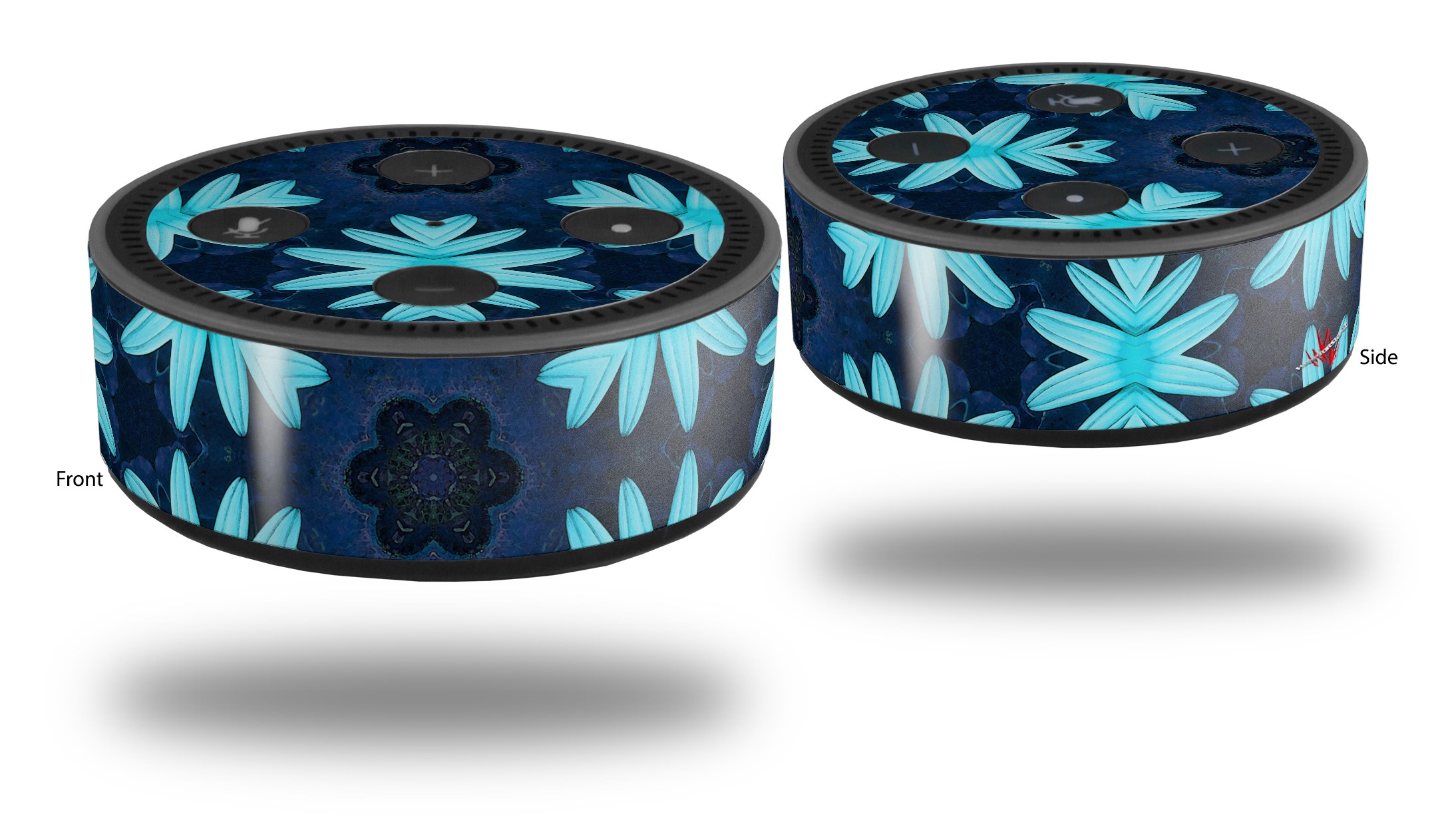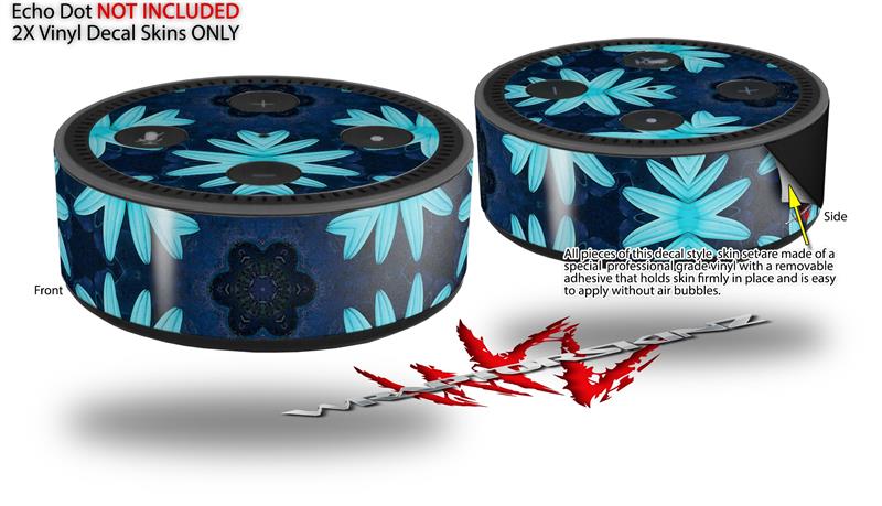 Skin Wrap Decal Set 2 Pack for Amazon Echo Dot 2 - Abstract Floral Blue (2nd Generation ONLY - Echo NOT INCLUDED)