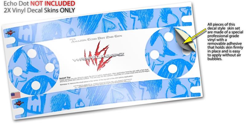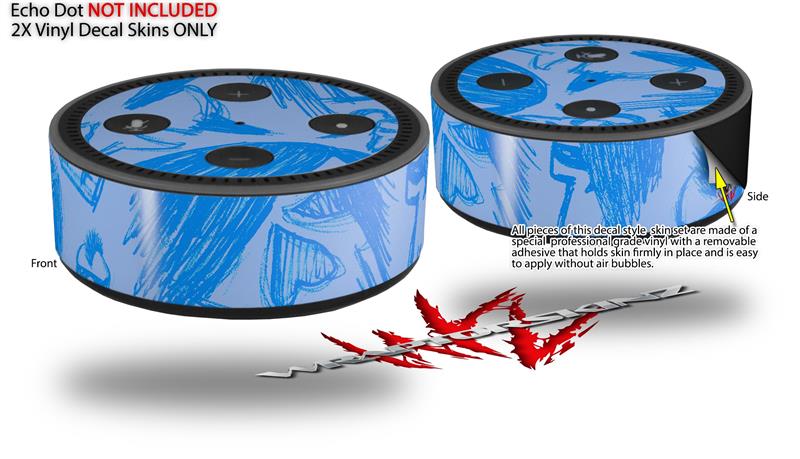 Skin Wrap Decal Set 2 Pack for Amazon Echo Dot 2 - Skull Sketches Blue (2nd Generation ONLY - Echo NOT INCLUDED)