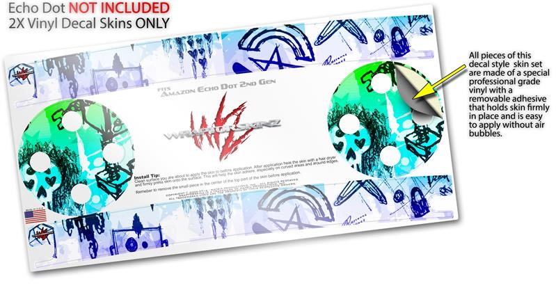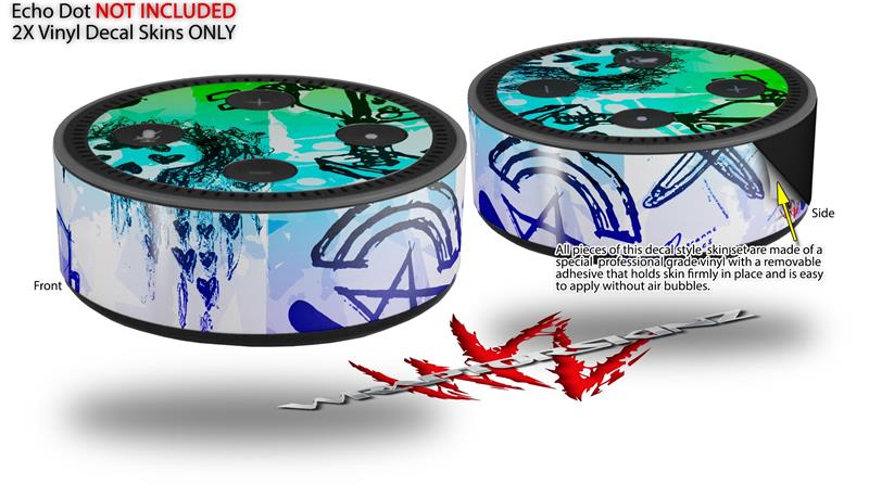 Skin Wrap Decal Set 2 Pack for Amazon Echo Dot 2 - Scene Kid Sketches Rainbow (2nd Generation ONLY - Echo NOT INCLUDED)