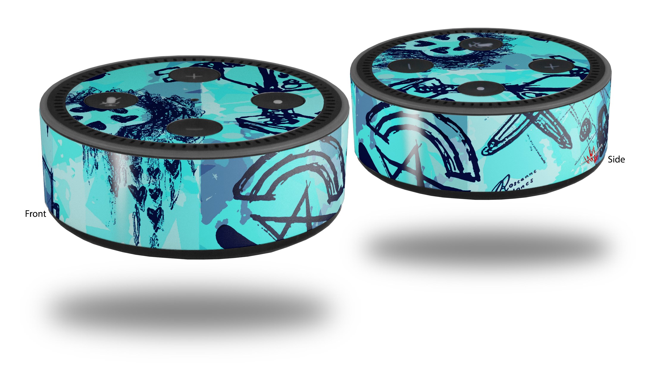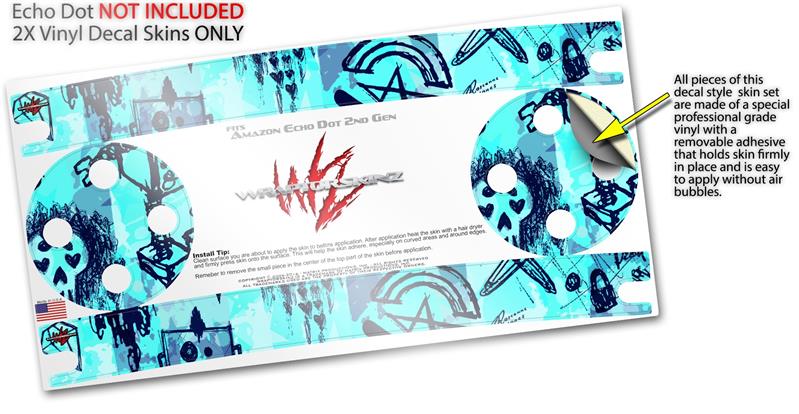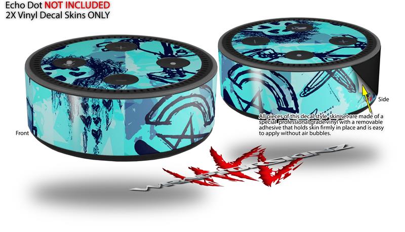 Skin Wrap Decal Set 2 Pack for Amazon Echo Dot 2 - Scene Kid Sketches Blue (2nd Generation ONLY - Echo NOT INCLUDED)