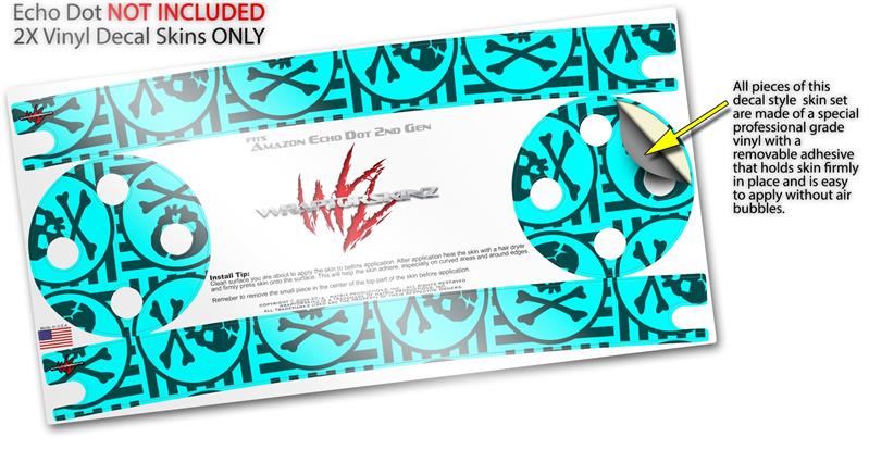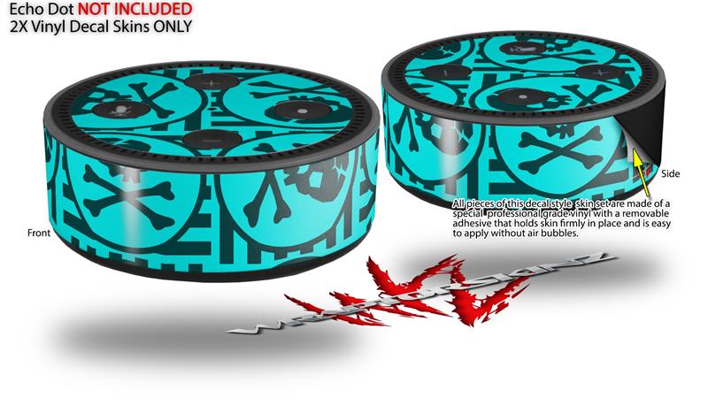Skin Wrap Decal Set 2 Pack for Amazon Echo Dot 2 - Skull Patch Pattern Blue (2nd Generation ONLY - Echo NOT INCLUDED)
