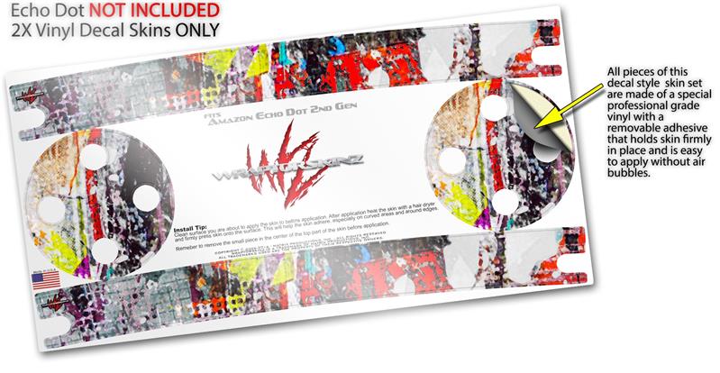 Skin Wrap Decal Set 2 Pack for Amazon Echo Dot 2 - Abstract Graffiti (2nd Generation ONLY - Echo NOT INCLUDED)