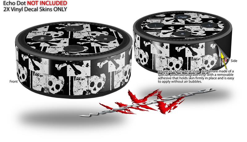 Skin Wrap Decal Set 2 Pack for Amazon Echo Dot 2 - Skull Checker (2nd Generation ONLY - Echo NOT INCLUDED)