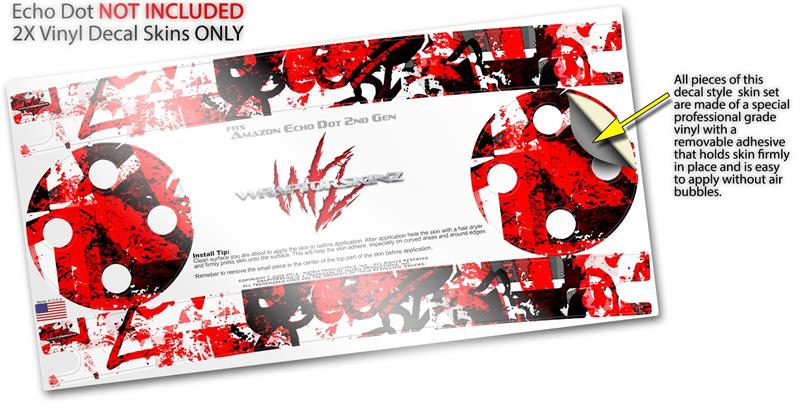 Skin Wrap Decal Set 2 Pack for Amazon Echo Dot 2 - Red Graffiti (2nd Generation ONLY - Echo NOT INCLUDED)