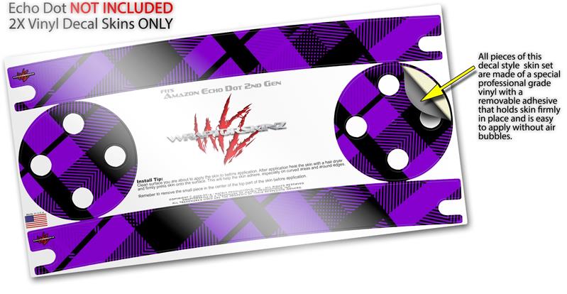 Skin Wrap Decal Set 2 Pack for Amazon Echo Dot 2 - Purple Plaid (2nd Generation ONLY - Echo NOT INCLUDED)