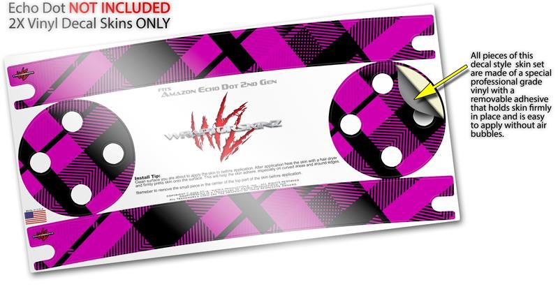 Skin Wrap Decal Set 2 Pack for Amazon Echo Dot 2 - Pink Plaid (2nd Generation ONLY - Echo NOT INCLUDED)