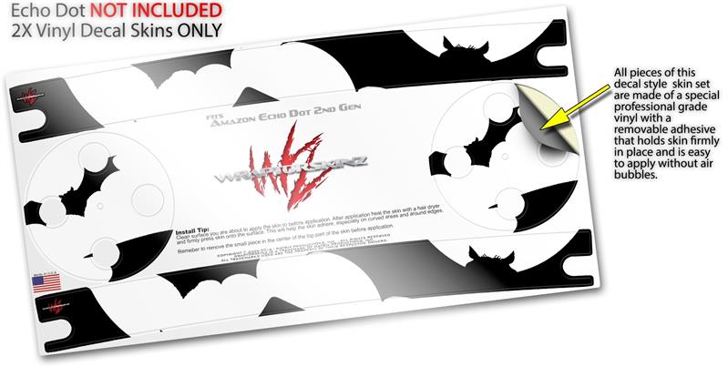 Skin Wrap Decal Set 2 Pack for Amazon Echo Dot 2 - Deathrock Bats (2nd Generation ONLY - Echo NOT INCLUDED)