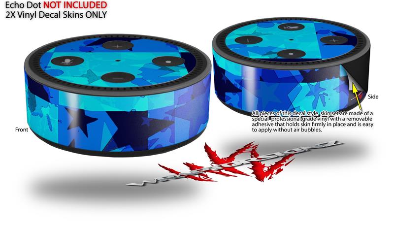Skin Wrap Decal Set 2 Pack for Amazon Echo Dot 2 - Blue Star Checkers (2nd Generation ONLY - Echo NOT INCLUDED)
