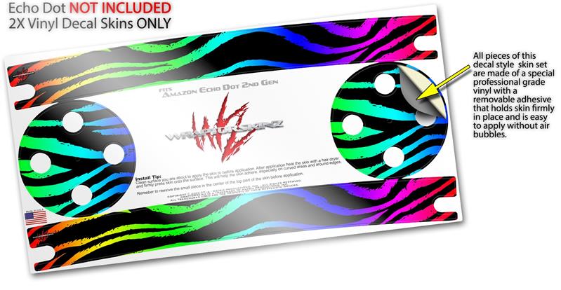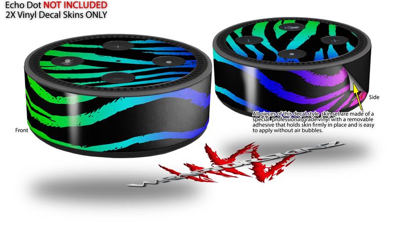 Skin Wrap Decal Set 2 Pack for Amazon Echo Dot 2 - Rainbow Zebra (2nd Generation ONLY - Echo NOT INCLUDED)