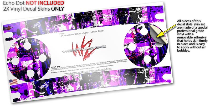 Skin Wrap Decal Set 2 Pack for Amazon Echo Dot 2 - Purple Graffiti (2nd Generation ONLY - Echo NOT INCLUDED)