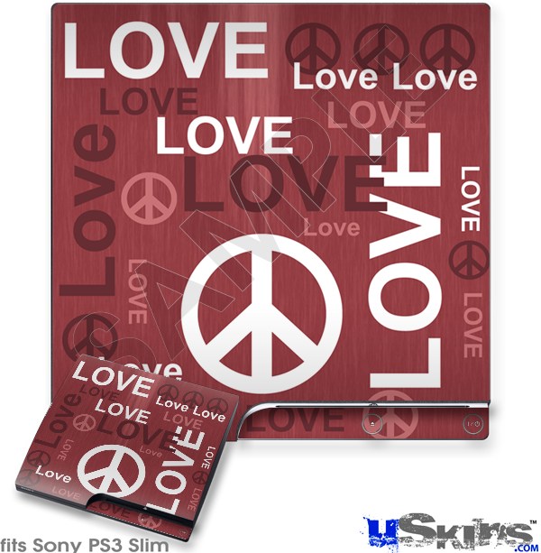 Decal Skin compatible with Sony PS3 Slim Love and Peace Pink