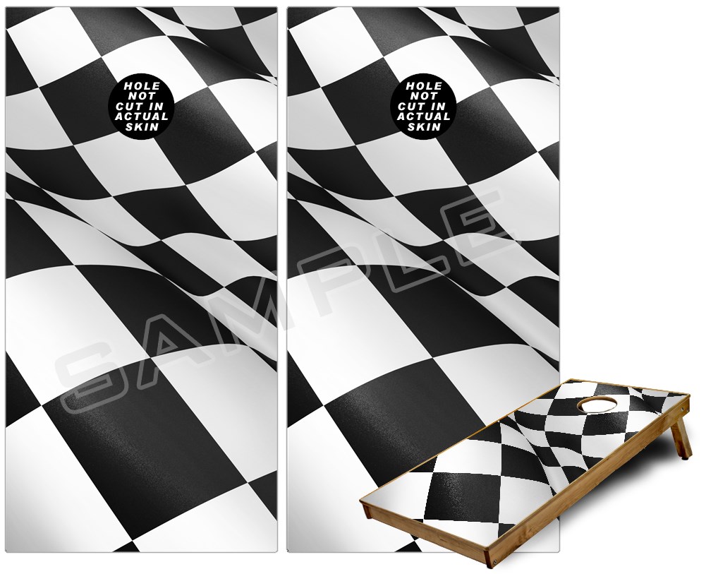 Cornhole Game Board Vinyl Skin Wrap Kit - Premium Laminated - Checkered Flag fits 24x48 game boards (GAMEBOARDS NOT INCLUDED)