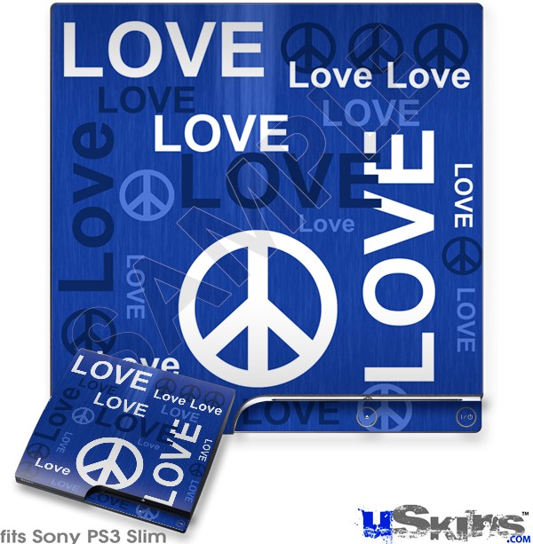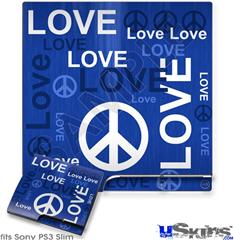 Decal Skin compatible with Sony PS3 Slim Love and Peace Blue