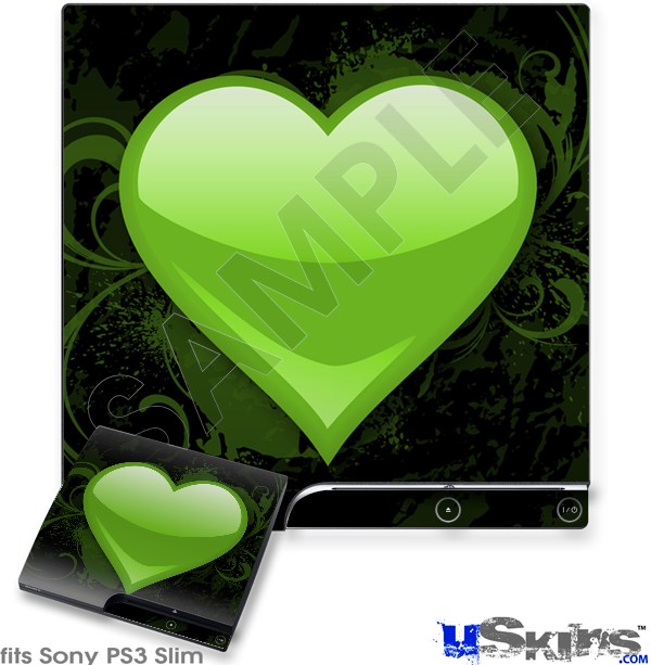 Decal Skin compatible with Sony PS3 Slim Glass Heart Grunge Green