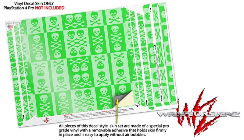 Vinyl Decal Skin Wrap compatible with Sony PlayStation 4 Pro Console Skull And Crossbones Pattern Green (PS4 NOT INCLUDED)