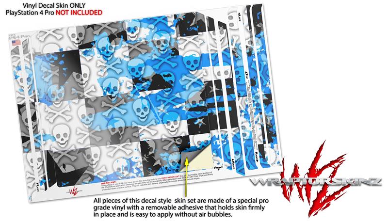 Vinyl Decal Skin Wrap compatible with Sony PlayStation 4 Pro Console Checker Skull Splatter Blue (PS4 NOT INCLUDED)