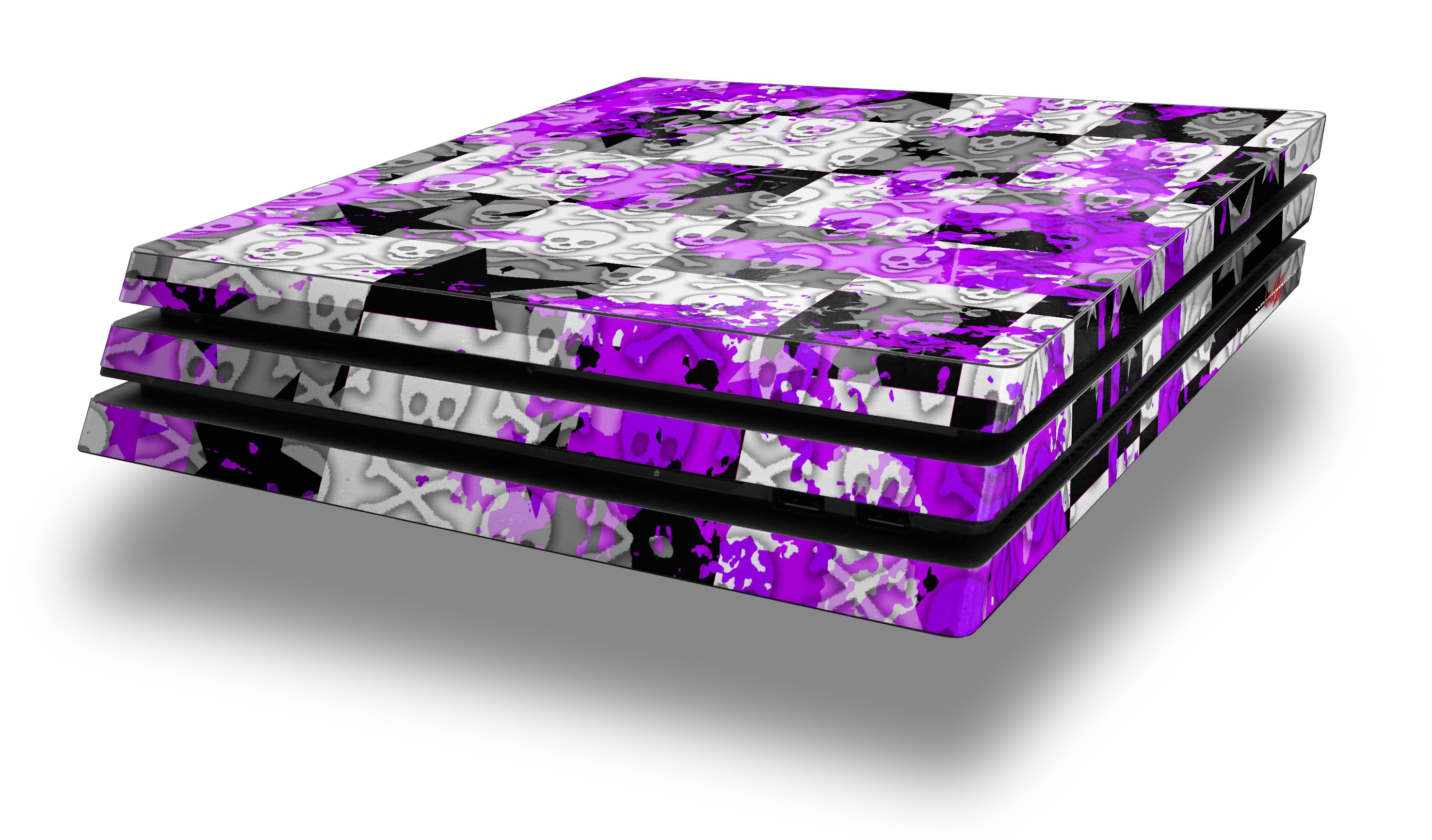 Vinyl Decal Skin Wrap compatible with Sony PlayStation 4 Pro Console Purple Checker Skull Splatter (PS4 NOT INCLUDED)