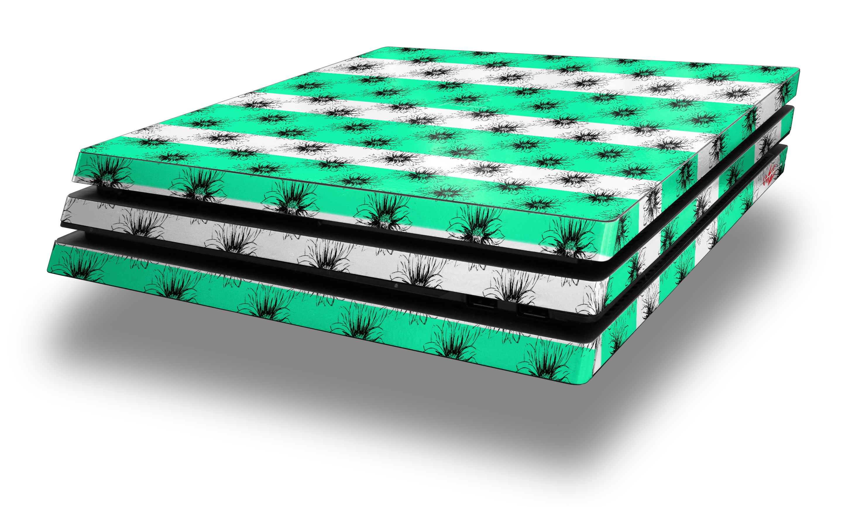 Vinyl Decal Skin Wrap compatible with Sony PlayStation 4 Pro Console Kearas Daisies Stripe SeaFoam (PS4 NOT INCLUDED)