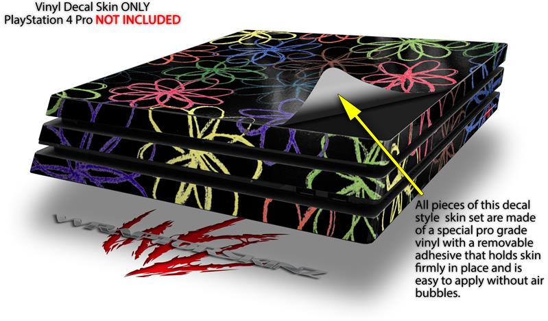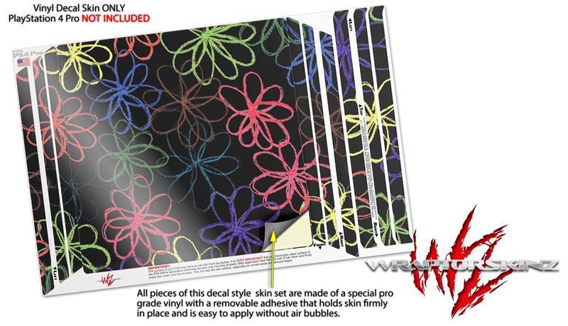 Vinyl Decal Skin Wrap compatible with Sony PlayStation 4 Pro Console Kearas Flowers on Black (PS4 NOT INCLUDED)