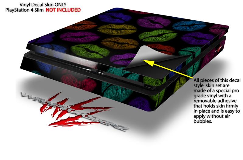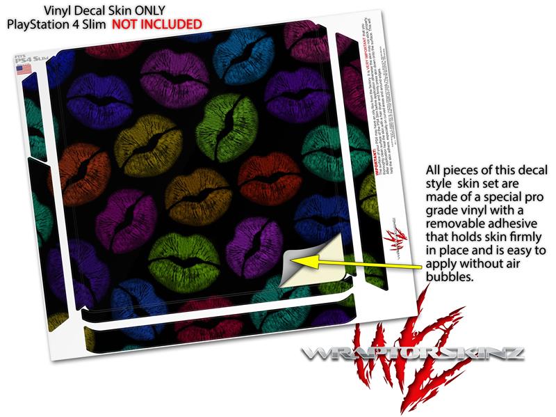 Vinyl Decal Skin Wrap compatible with Sony PlayStation 4 Slim Console Rainbow Lips Black (PS4 NOT INCLUDED)