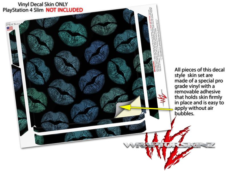 Vinyl Decal Skin Wrap compatible with Sony PlayStation 4 Slim Console Blue Green And Black Lips (PS4 NOT INCLUDED)