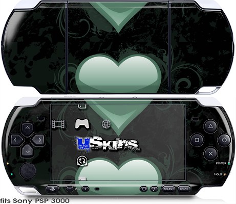 Sony PSP 3000 Skin - Glass Heart Grunge Seafoam Green