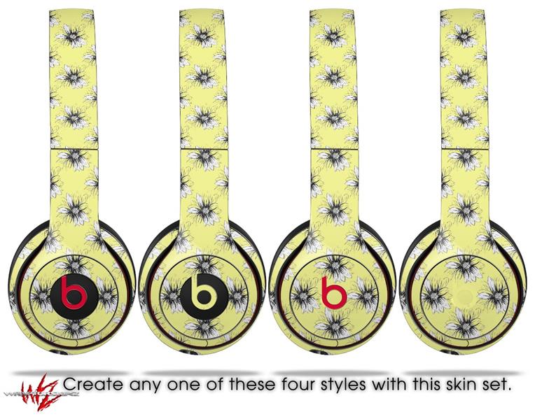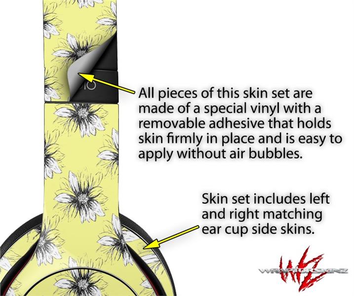 WraptorSkinz Skin Decal Wrap compatible with Beats Solo 2 and Solo 3 Wireless Headphones Kearas Daisies Yellow (HEADPHONES NOT INCLUDED)