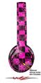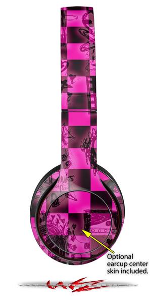 WraptorSkinz Skin Decal Wrap compatible with Beats Solo 2 and Solo 3 Wireless Headphones Pink Checkerboard Sketches (HEADPHONES NOT INCLUDED)