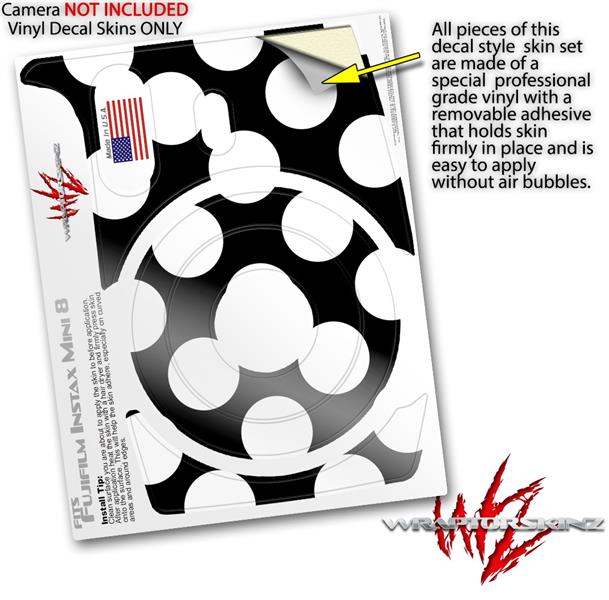 WraptorSkinz Skin Decal Wrap compatible with Fujifilm Mini 8 Camera Kearas Polka Dots White On Black (CAMERA NOT INCLUDED)